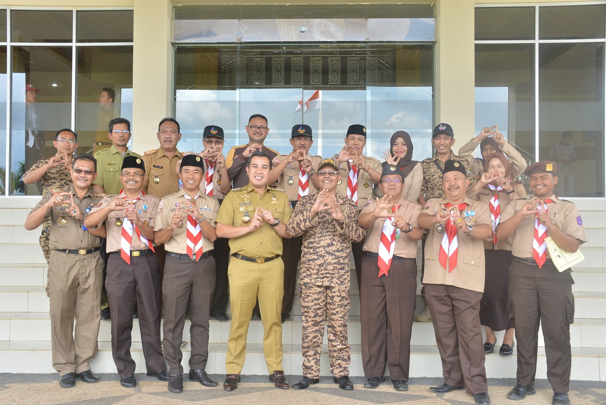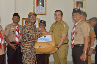 Bantuan yang di terima langsung Bupati Pesawaran Dendi Ramadhona yang di saksikan ketua Kwartir Cabang Pramuka Pesawaran Aria Guna di Aula Kantor Pemkab setempat Senin (6/3/2017) pukul 14.20 wib.