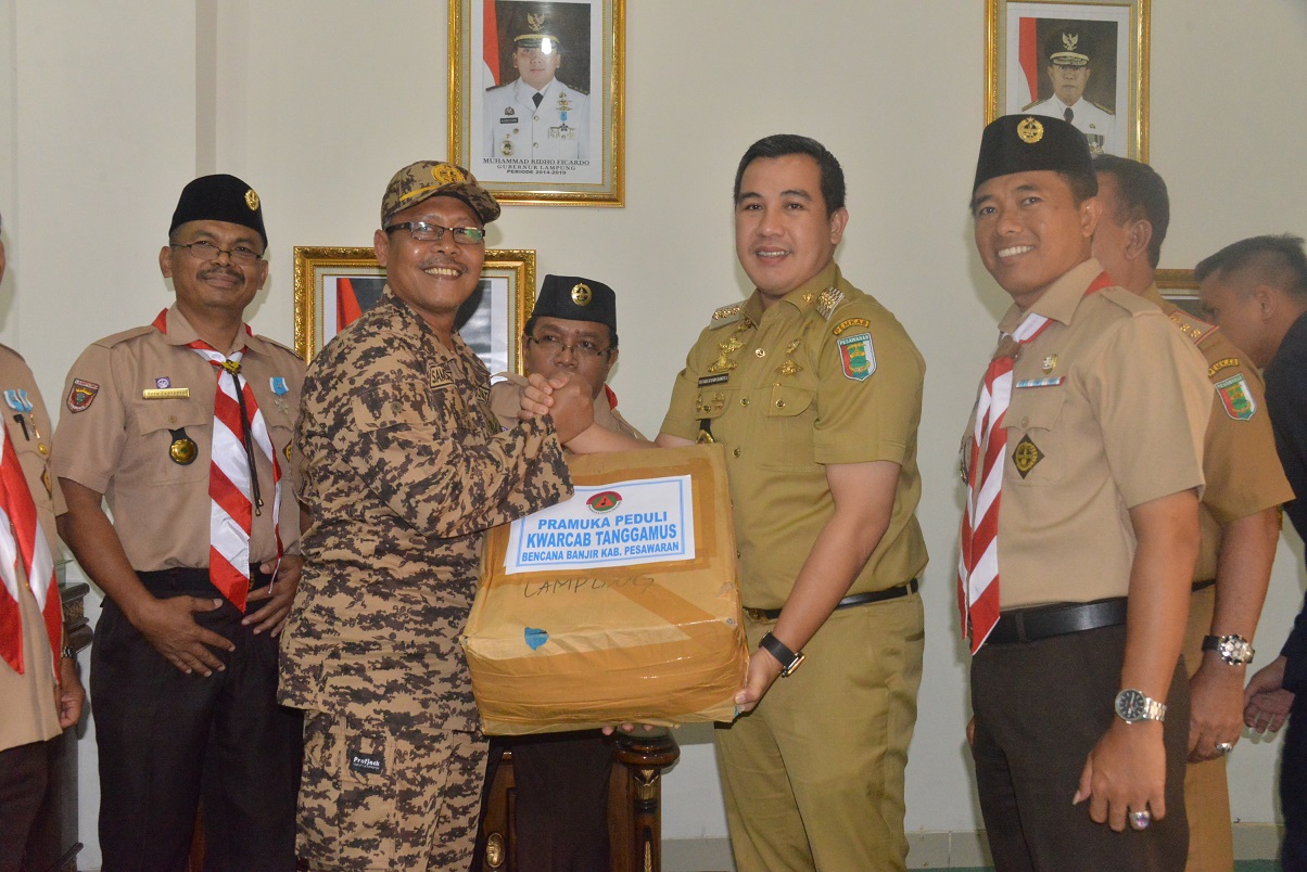Menurut Ketua Kwartir Cabang Pramuka setempat Aria Guna, bantuan itu di berikan langsung kepada Bupati Dendi Ramadhona, selanjutnya akan di serahkan kepada warga masyarakat yang terkena musibah banjir beberapa waktu lalu.