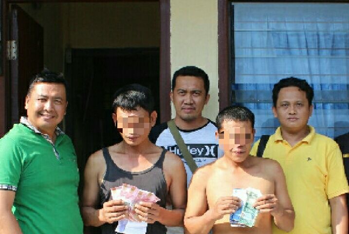 Kedua pelaku berinisial ZA (39) warga Pekon Sanggi Kecamatan Bandar Negeri Semoung (BNS) dan AS (36) beralamat Pekon Rajabasa Kecamatan BNS, Tanggamus, ditangkap berikut barang bukti 5 kwitansi, senjata tajam jenis pisau dan uang tunai Rp. 700 ribu.