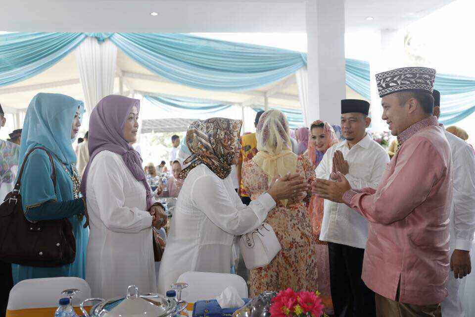 Usai shalat ied, Gubernur Ridho Ficardo menggelar open house di rumah dinas, Mahan Agung, Bandar Lampung. Selain para pejabat tampak hadir sejumlah tokoh lintas agama. Gubernur dan istri, Aprilani Yustin Ficardo, menerima ucapan Lebaran ratusan tamu yang datang silih berganti.