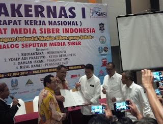 GERBANGREPUBLIK.COM – (Surabaya). Perkembangan Media Sosial di era Teknologi semakin berkembang, meski demikian Media Sosial jelas berbeda dengan Media Ciber yang sehat sedangkan Medsos bisa sumbernya rekayasa.Hal ini di katakan Ketua Dewan Pers Yosep Adi Prasetyo, Rabu (36/7/2017) di hotel Harris Surabaya.