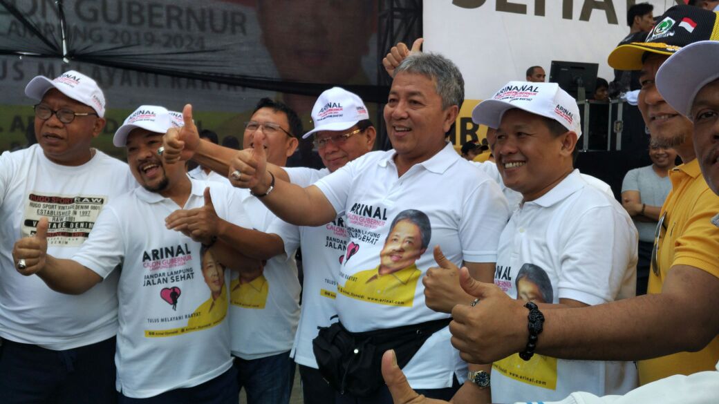 GERBANGREPUBLIK.COM – (Bansar Lampung). Antusias masyarakat Bandar Lampung terhadap kehadiran bakal Calon Gubernur Lampung Arinal ditengah – tengah ribuan peserta jalan sehat yang bertabur berbagai hadiah di Tugu Adipura, Bandarlampung, (30 /7/2017).