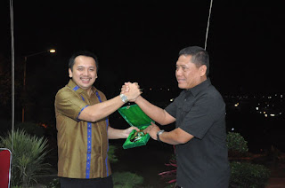 Dalam acara ini juga terdapat serah terima cindera mata dari Gubernur Lampung kepada Pongdam II Sriwijaya. (Humas Prov)