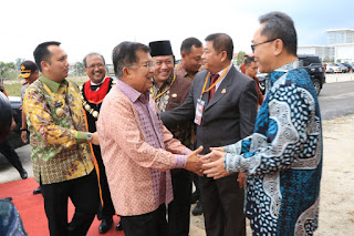 “Pembangunan Itera harus tetap dipercepat. Bagaimana mempercepat pembangunannya dengan paket yang lebih baik, melalui APBN dan kerja sama dengan pihak lain,” kata Yusuf Kalla saat orasi ilmiah bertema ‘Pembangunan mahasiswa berkarakter sebagai bagian dari model mental di perguruan tinggi’ pada sidang terbuka Dies Natalis ke-3 di Kampus Itera, Jalan Terusan Ryacudu, Way Huwi, Kecamatan Jati Agung, Lampung Selatan, Jumat (6/10/2017. Pada kesempatan tersebut Wapres didampingi Ketua MPR Zulkifli Hasan menandatangi prasasti peresmian Gedung A, Embung C, Gedung C, dan Gedung E.