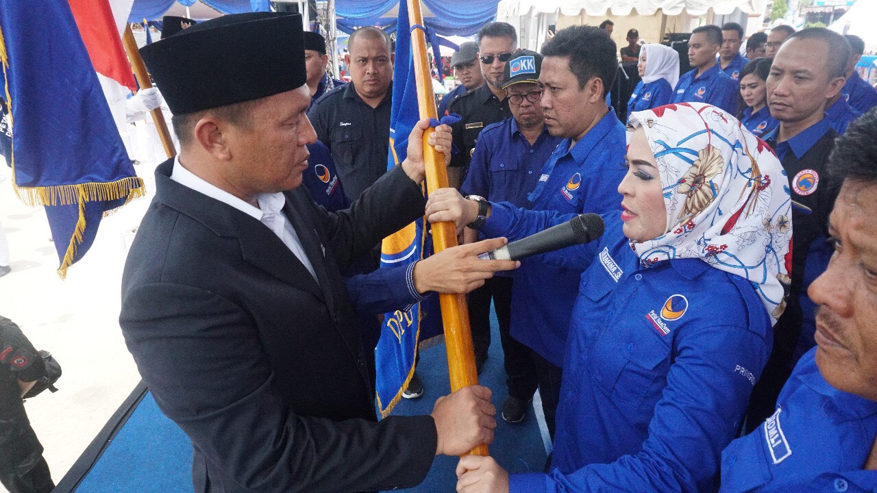 “Saya siap mengibarkan panji partai dan memenangkan Kakak Mustafa menjadi Gubernur Lampung,” kalimat tersebut menggelora saat Ketua DPW NasDemLampung Mustafa menyerahkan bendera pataka kepada pengurus DPD NasDem Pringsewu yang baru.