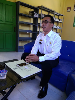 | Kades Rantau Jaya Udik 1 Kecamatan Sukadana Lampung Timur Hanafiah saat memberi arahan terhadap seluruh aparat Desa dalam rangka meningkatkan realisasi PBB, Rabu (11/20/2017) foto Samsi |