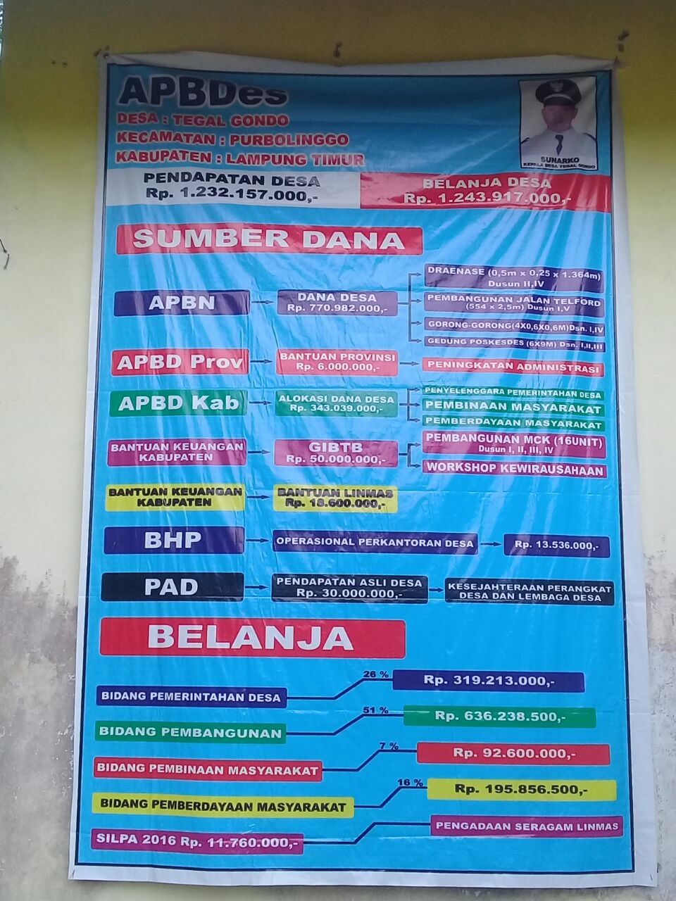 Salah satu Desa yang yang merasakan Manfaat dari DD yaitu Desa Tegal Gondo yang berada di kecamatan Purbolinggo Kabupaten Lampung Timur.