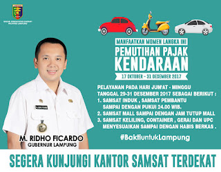 Seperti diketahui, program ini dibuka secara resmi oleh Gubernur Lampung Muhammad Ridho Ficardo di Sistem Administrasi Manunggal Satu Atap (Samsat) Induk Rajabasa, Bandarlampung, pada Selasa, 17 Oktober 2017.