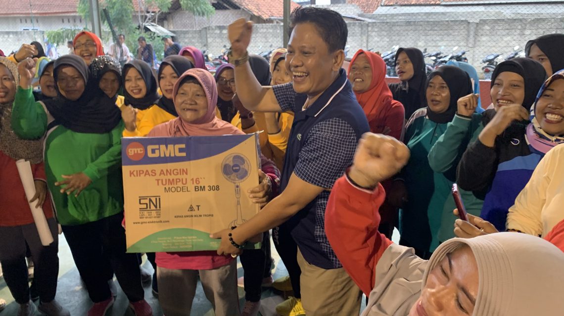 Hadir dalam acara senam sehat gedung olah raga Futsal Kampung Simpang Agung Kecamatan Seputih Agung, Muhammad Ikhsan mendapat sambutan hangat dari peserta senam sehat tersebut.