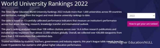 Berikut ini daftar universitas terbaik di Indonesia versi THE WUR 2022.