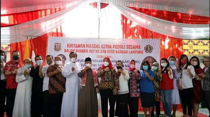 Lampungmedia.co, BANDAR LAMPUNG – Walikota Bandar Lampung membuka Baksos “Kegiatan Khitanan Massal Ceria Peduli Sesama” yang digelar oleh Paguyuban Devosan Kerahiman Ilahi Santa Perawan Maria Keuskupan Tanjung Karang dan Alumni SMP Xaverius Teluk Betung dalam rangka memperingati HUT Ke – 340 Kota Bandar Lampung, Jum’at (8/7/2022).