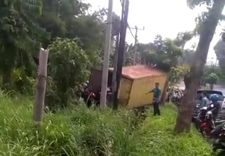 Lampungmedia.co, Bandar Lampung – Telah terjadi kecelakaan truk muatan sosis dengan nomor polisi BE 8733 YH, Kamis (4/8/22) siang yang berlokasi di Jalan P. Emir M. Noer, Tanjakan Mandala, Jalur 2 Palapa Bandar Lampung. Kejadian itu membuat warga sekitar heboh dan berbondong-bondong mendatangi lokasi kejadian.