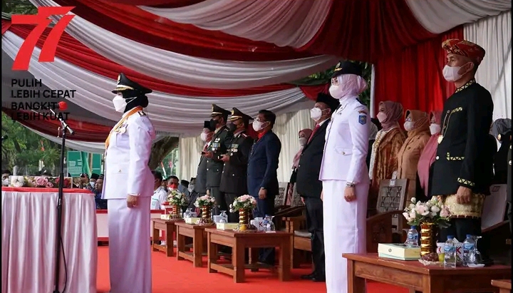 Upacara dipimpin oleh Walikota Bandar Lampung Eva Dwiana, juga diikuti oleh Satuan TNI-Polri, serta forkopimda lainnya di Lapangan Saburai, Korem 043/Gatam.