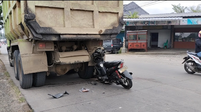 Lampungmedia.co, Lampung Selatan – Motor menyeruduk truk di Jalan Pangeran Senopati (dekat jembatan plyover) Jatimulyo, Kecamatan Jatiagung, Lampung Selatan, Rabu (19/10).