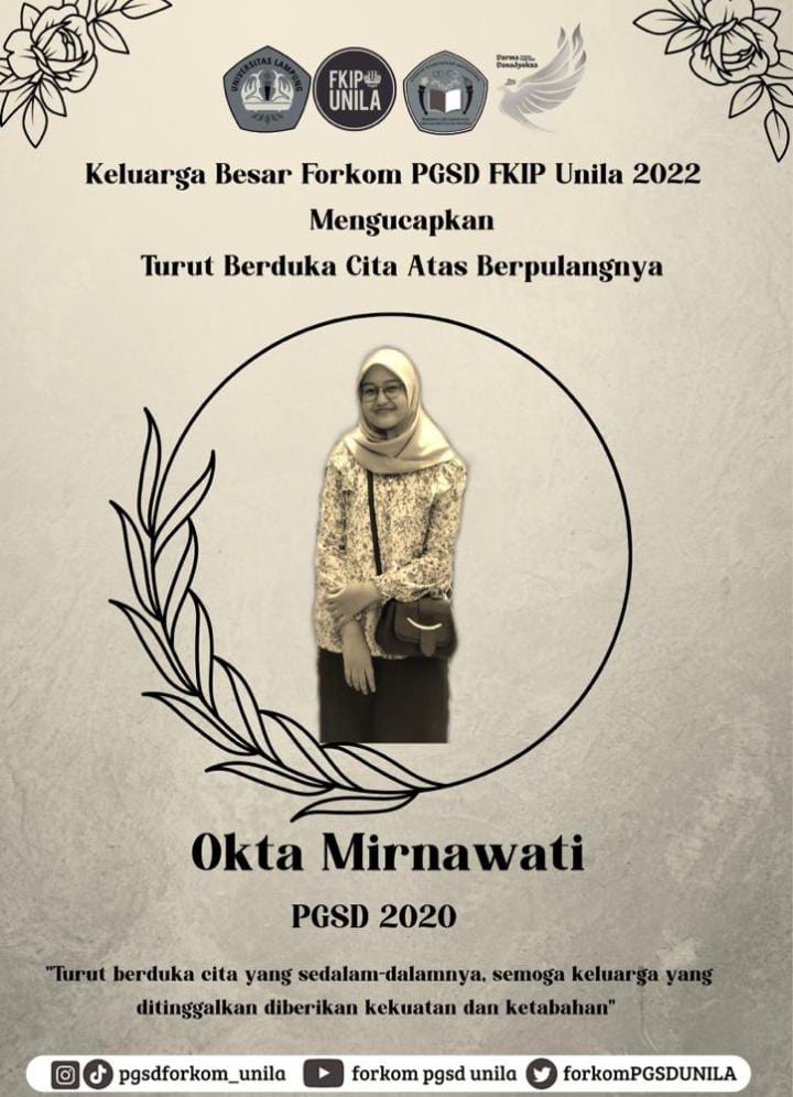 Adapun pengendara motor yang tewas bernama Okta Mirnawati, mahasiswi jurusan PGSD Universitas Lampung yang kampusnya berada di Kota Metro.