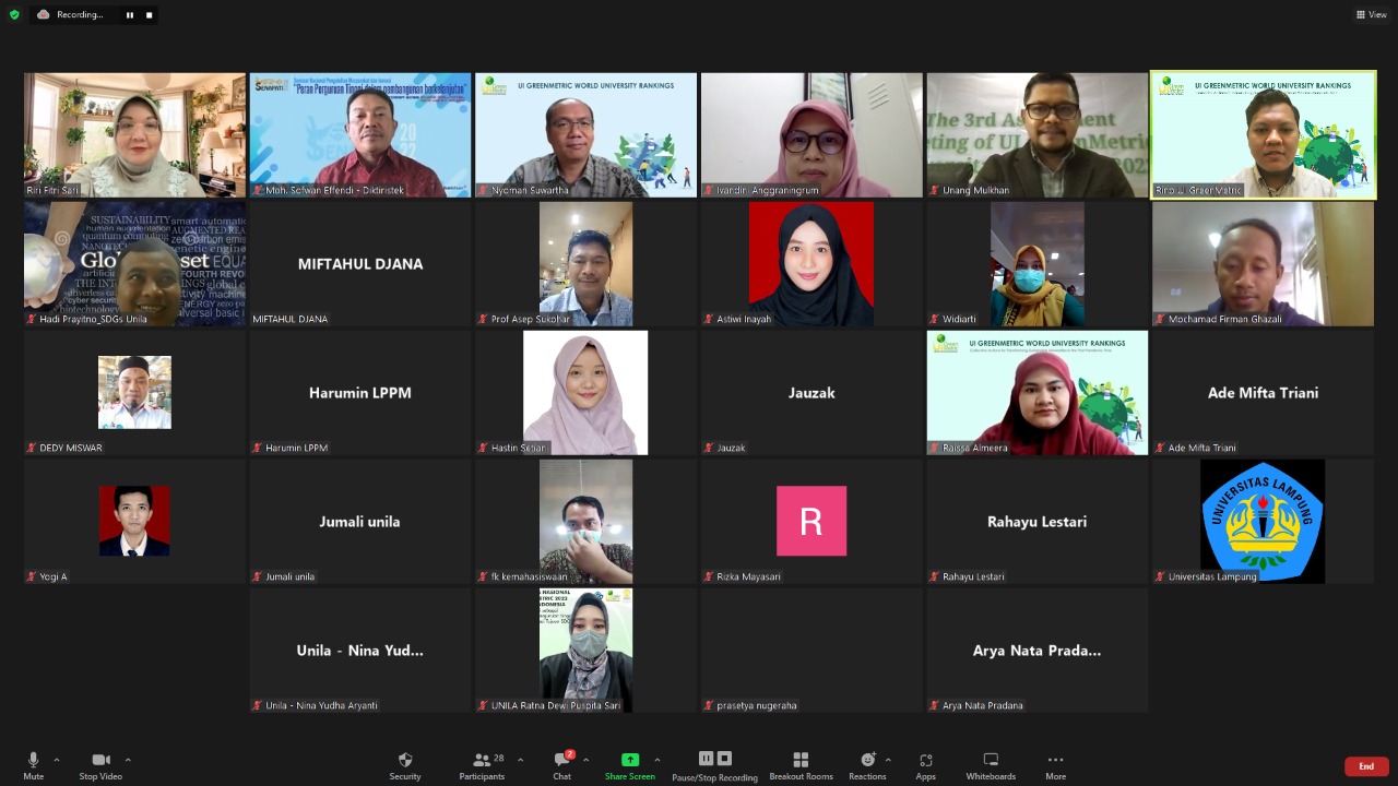 Lampungmedia.co, Bandar Lampung – Bertepatan dengan 3rd Meetings Assessment UI Greenmetric pada Kamis (27/10/2022), Universitas Lampung (Unila) mendapatkan Penghargaan Certificate of Compliance dan UI Greenmetric Trees Rating.