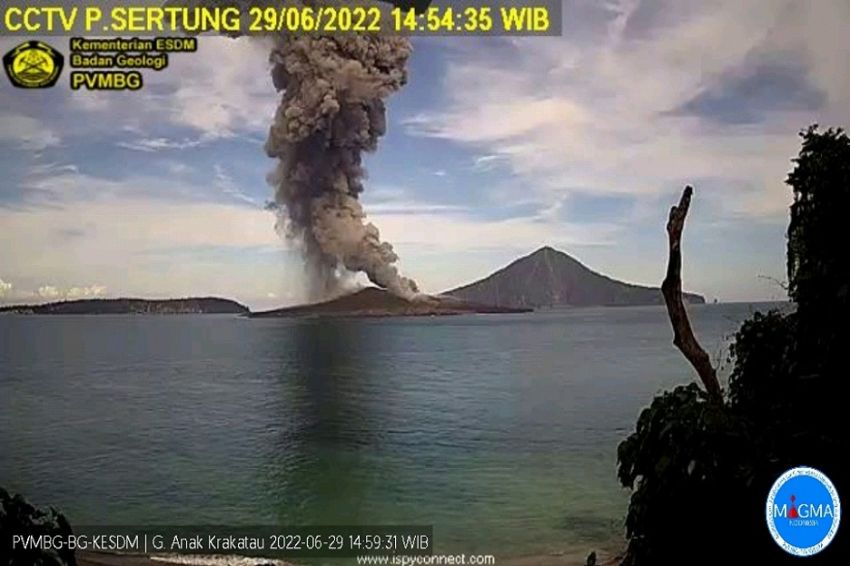 lampungmedia.co, Kalianda – Gunung Anak Krakatau (GAK) kembali erupsi dengan ketinggian letusan mencapai 2.000 meter, pukul 07.43 WIB, Selasa, 28 Maret 2023. Kolom abu teramati berwarna hitam dengan intensitas tebal ke arah timur laut.