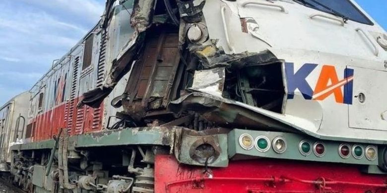 Kondisi bagian depan kereta api dan mobil truk Fuso tersebut dalam keadaan ringsek parah.