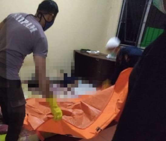 Korban ditemukan tergeletak di atas kasur dalam kondisi tubuh membengkak serta membiru.