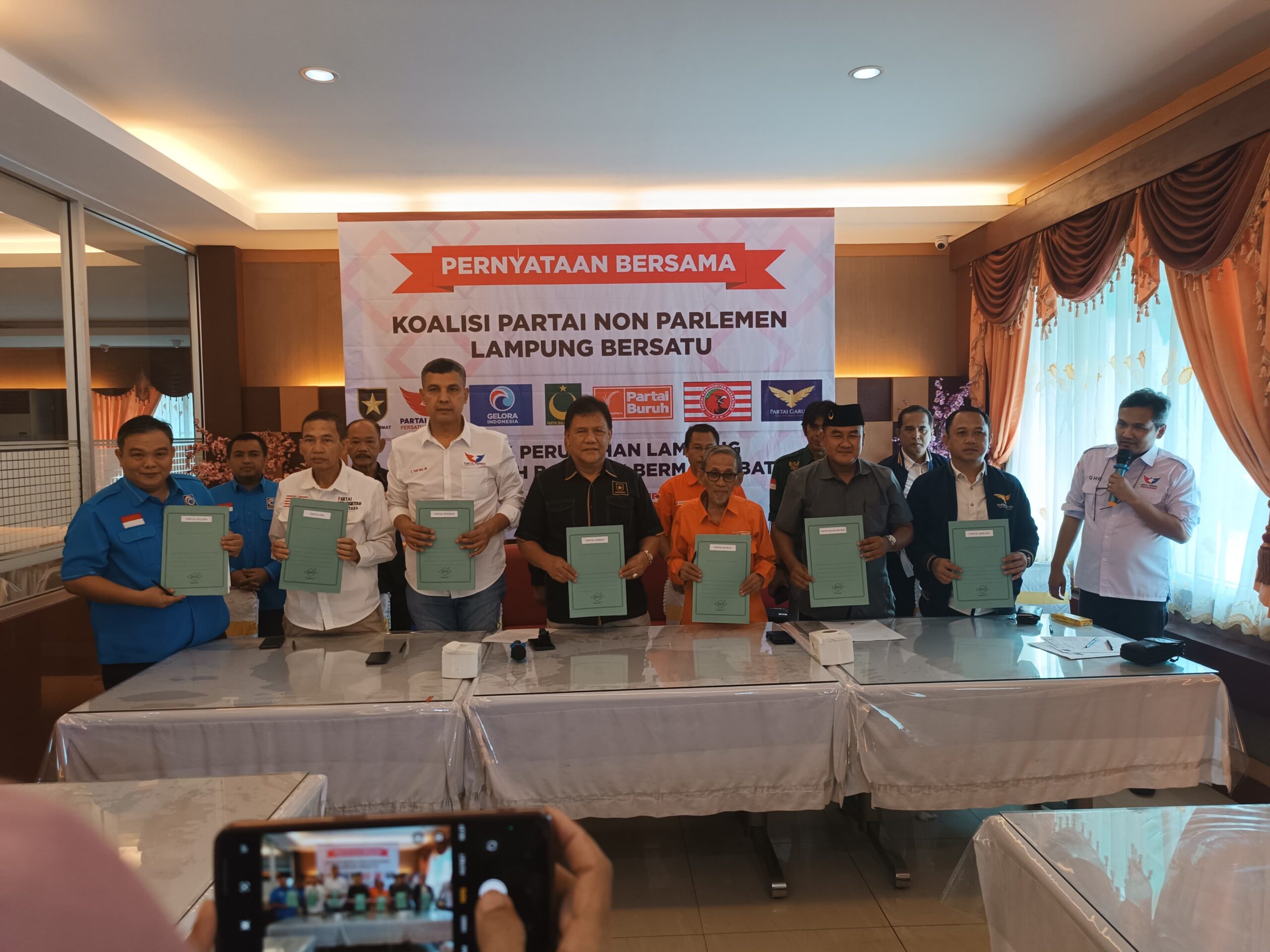 lampungmedia.co, Bandarlampung – Pimpinan dari tujuh partai politik (parpol) non-parlemen tingkat provinsi telah berkumpul dan bersepakat membentuk koalisi untuk menghadapi Pilgub Lampung yang akan berlangsung pada November mendatang.