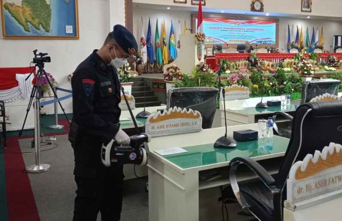 lampungmedia.id, Lampung – Guna Pengamanan kegiatan Rapat Paripurna Istimewa DPRD Provinsi Lampung dalam rangka Pengucapan Sumpah/Janji Anggota DPRD Provinsi Lampung masa jabatan 2024-2029 di Gedung DPRD Provinsi Lampung dibawah pimpinan langsung Kasubden II Jibom Akp Mantun Manik selaku Kateam Sterilisasi dan Wakasubden I Wanteror selaku Kateam Escape, Senin (02/9/24).