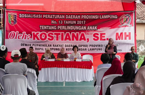 lampungmedia.id, Bandar Lampung – Wakil Ketua I DPRD Provinsi Lampung, Ibu Kostiana, SE, MH, melaksanakan kegiatan sosialisasi Peraturan Daerah Provinsi Lampung Nomor 13 Tahun 2017 tentang Perlindungan Anak.