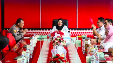 lampungmedia.id, Bandar Lampung – Wali Kota Bandar Lampung, Hj. Eva Dwiana, menerima kunjungan silaturahmi Kapolresta Bandar Lampung, Kombes Pol Alfret Jacob Tilukay, beserta jajaran, di ruang kerja kantor Pemerintah Kota, Rabu (5/2). Acara berlangsung hangat dengan suasana kekeluargaan.