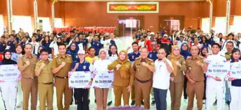 lampungmedia.id, Bandar Lampung — Wali Kota Bandar Lampung, Hj. Eva Dwiana memberikan tali asih sebagai bentuk apresiasi dan penghargaan kepada para atlet dan pelatih asal Kota Bandar Lampung yang telah berjuang dan menorehkan prestasi membanggakan dalam ajang Pekan Olahraga Nasional (PON) XXI Tahun 2024 di Aceh dan Sumatera Utara.