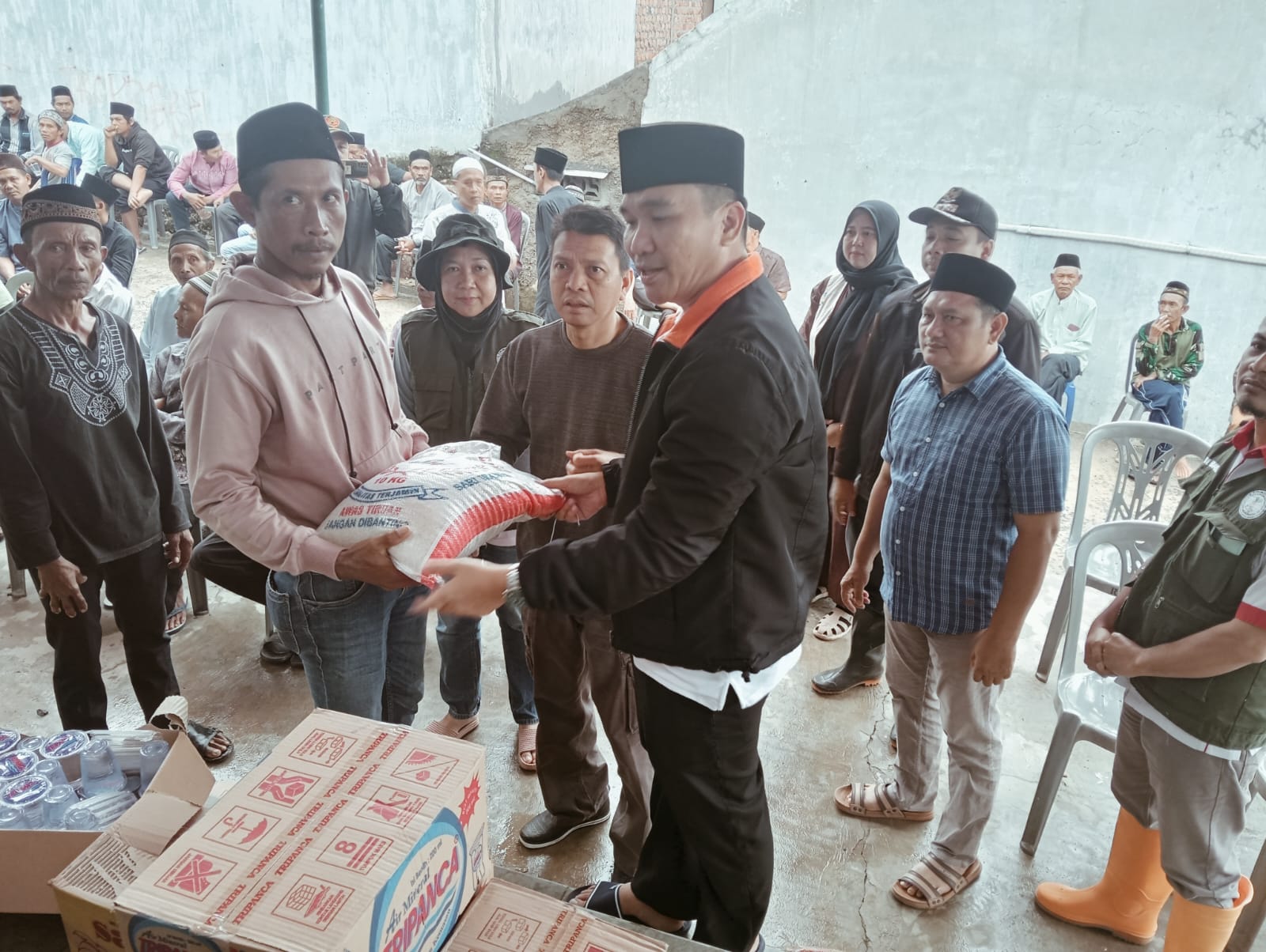 Dalam kunjungan Pemerintah Kota Bandar Lampung membawa bantuan berupa beras, air mineral dan mie Instan.