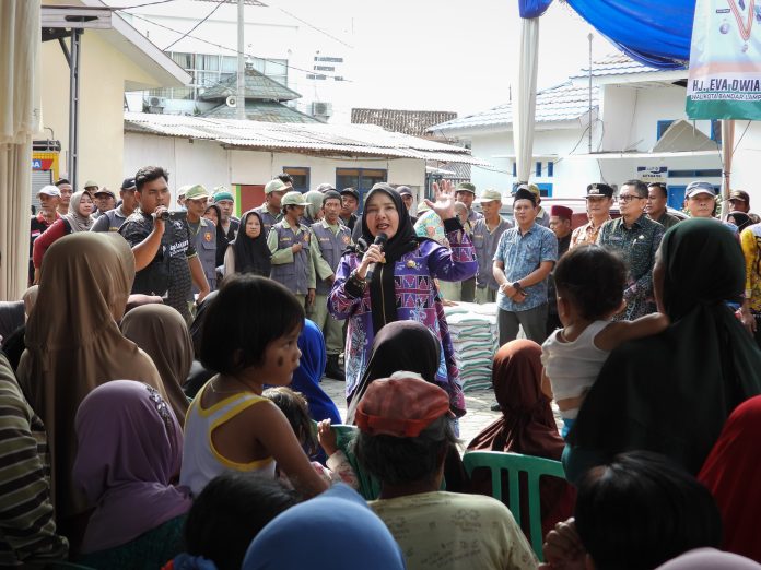 bandarlampung.id, Bandar Lampung – Jelang perayaan hari raya idul Fitri, Wali Kota Bandar Lampung Hj. Eva Dwiana menyalurkan bantuan beras dari Badan Amil Zakat Nasional (Baznas) Kota Bandar Lampung kepada masyarakat.